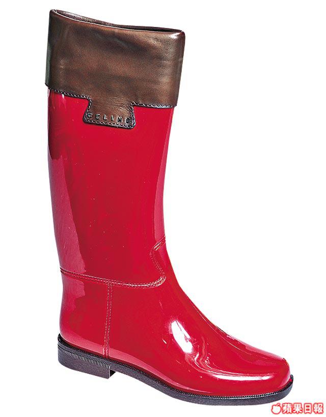 奧運年,今季主打sportylook的Celine都加入膠boot戰團,推出一款三色的高筒膠雨靴,在高筒邊再以啡色軟皮做配襯,貴氣感突出,有點騎師風格。