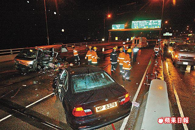 現場是供緊急車輛通過的路口,插有長10米的活動鐵欄,客貨車將欄杆撞斷,衝過對面東行快線,此時一輛寶馬325i房車駛至,收掣不及,猛撞客貨車左邊車身。
