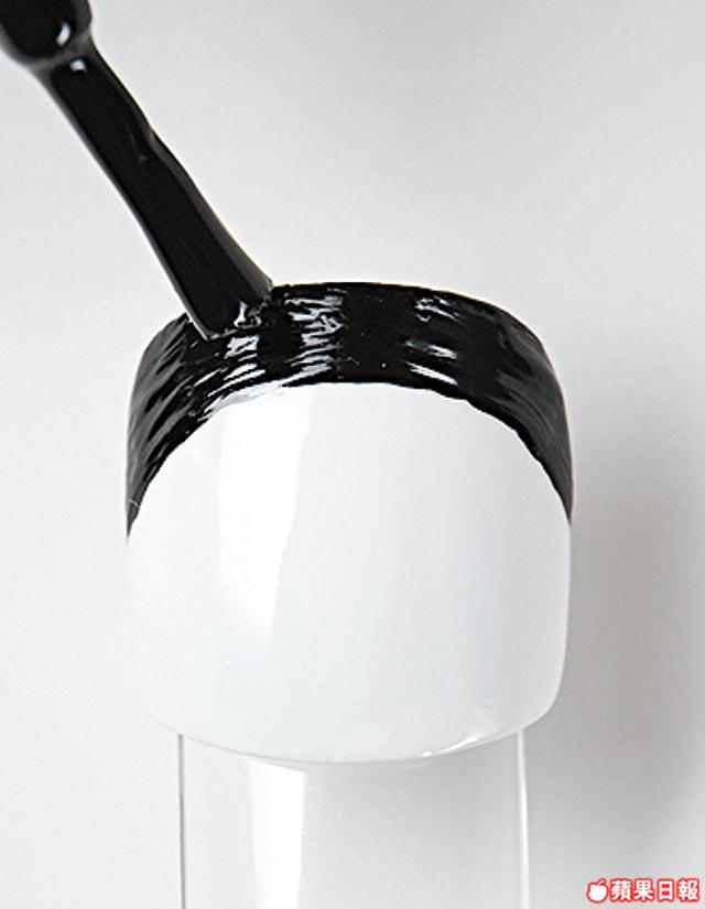 1.上完底油後在整隻腳甲塗上最少兩層白色甲油。然後上黑色法式邊。