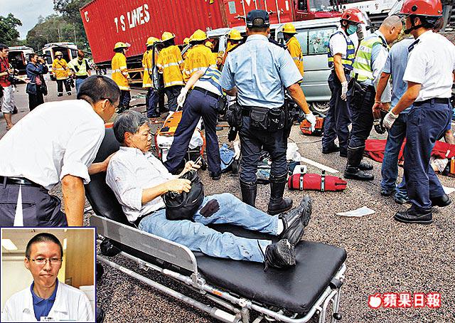 鄒醫生表示,當時見到被困在車頭的一男一女情況比較差,並開始不清醒。」鄒醫生於是為他們急救,並加以安慰。