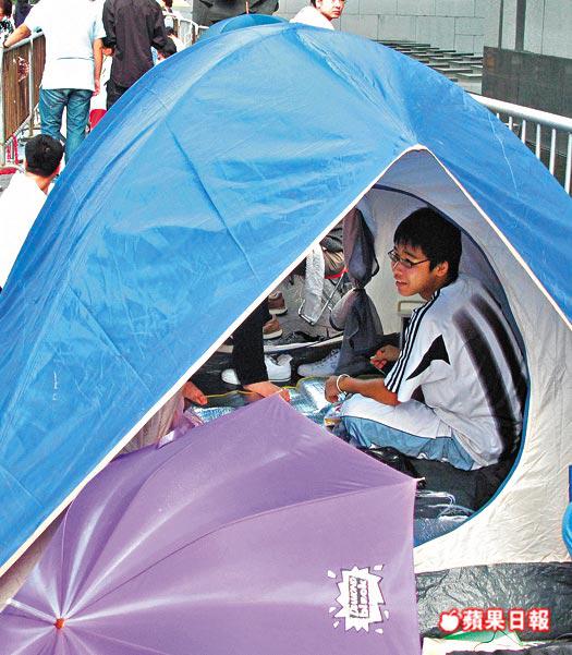 他們前日深夜11時已來到,因為無帶雨傘淋至全身濕透變落湯雞,幸有好心人臨時給他們一把雨傘,總算有個瓦遮頭,至昨日清晨終捱過,各獲得購貨憑證。