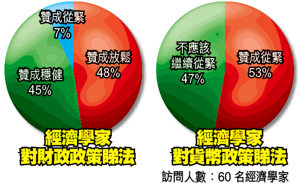 所謂「雙防」即防過熱及防通脹,「一防一保」則是防止高通脹,及保持經濟增長不過份下滑。調查中,48%認為可將穩健的財政政策轉為放鬆,45%認為應保持穩健;但貨幣政策方面,則以認為應保持從緊者佔多,達53%。