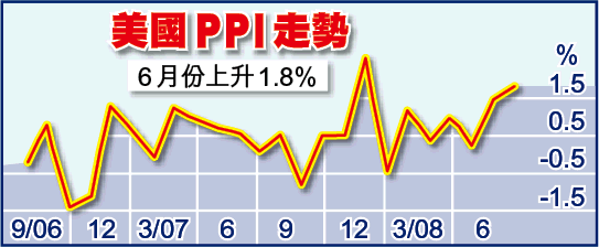 數據方面,美國上月生產物價指數(PPI)升1.8%,為去年11月以來最大升幅,高於預期的1.4%,且連升六個月,反映原油及原材料漲價推高生產成本。撇除食品及能源價格的核心PPI升0.2%,較預期的0.3%為低。按年計,期內PPI升9.2%,升幅為27年來最大。