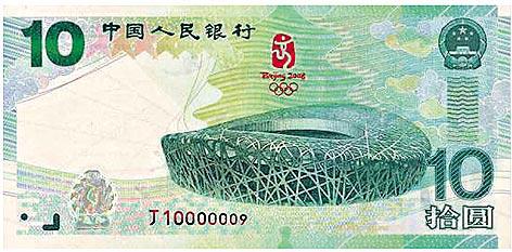 本月9日中國人民銀行(簡稱央行)發行600萬張10元面值的人民幣京奧紀念鈔(圖),一時洛陽紙貴。中國金幣收藏網透露,央行計劃再增加發行6,000萬張京奧紀念鈔,以滿足民眾收藏奧運紀念鈔之願望。但接近央行的消息稱,央行有關部門尚未接到增發通知。另外,央行的消息還否認前批奧運紀念鈔天壇塔尖有錯印。