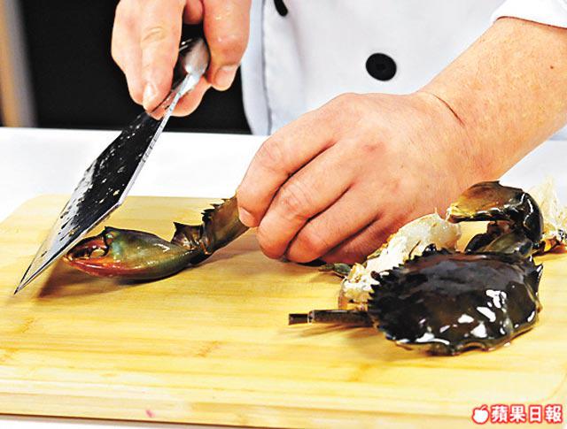 買新鮮肉蟹,可用筷子在第一及二腳中間插入,令肉蟹快速死去才劏。