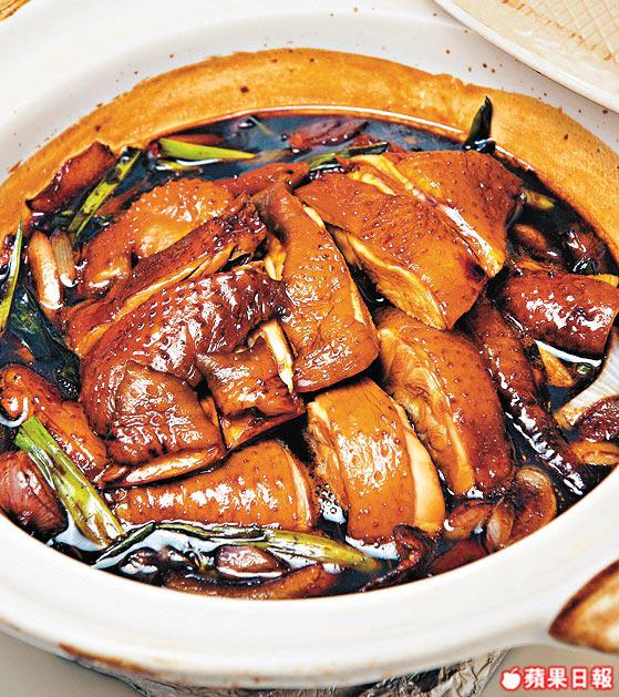 將滷好的豉油雞以亁葱、洋葱及薑爆香,加頭抽做香汁再輕焗,獨特惹味。