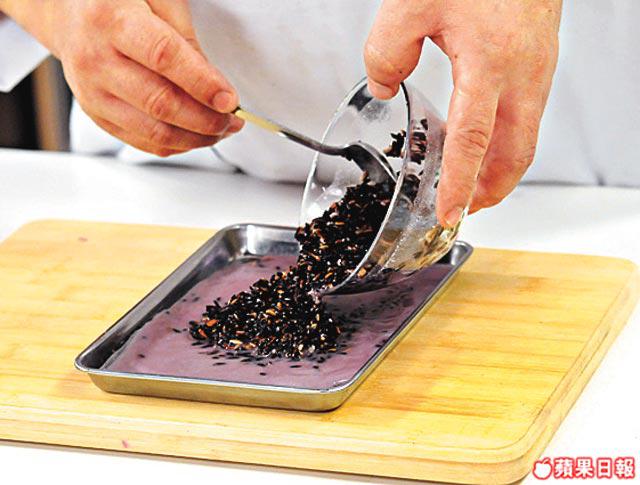 1.把黑糯米加入水、糖、鹽及椰漿攪勻鋪平,隔水蒸約20分鐘至透明取出。
