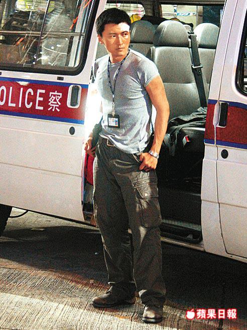 另一邊廂,霆鋒前晚在北角街頭拍攝電影《証人》,見他坐在一輛警車上,頭部貼上膠布,這場戲是講述霆鋒辦案時受傷,飾演其同袍的廖啓智知他受傷後,緊張地跑到他身邊慰問。木無表情的霆鋒,看來有點疲態,拍完夜班戲收工後,昨早10時許他又趕到機場,霆鋒表示:「今日我會飛去上海做嘢。」