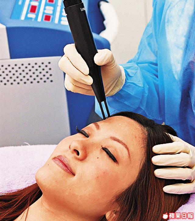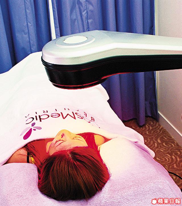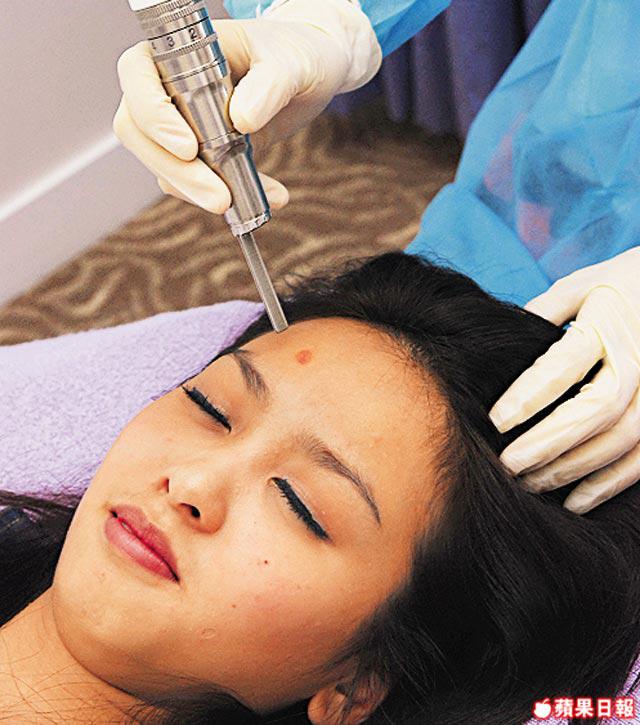 塗上麻醉藥膏後,用激光紅點在全面掃,有助均勻膚色。