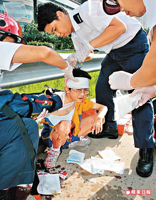 當時,一輛新巴尾隨旅巴行駛立即停車,司機和多名乘客合力救出多名被困受傷學童,當中9歲男生譚偉賢右手夾在毀爛座椅中,在校巴翻側衝前期間手臂與路面磨爛見骨,傷勢較重,經送院治理後情況嚴重,另外一男一女學童情況穩定,其餘傷者經敷藥後出院。
