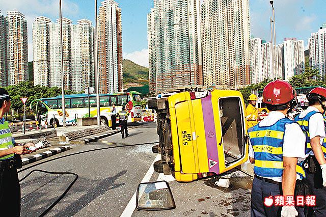 昨日意外中被撞翻的校巴為15座位,是將軍澳唐明苑保良局黃永樹小學的校巴,51歲姓陳司機有30多年駕駛經驗,昨日為學校暑假前最後一日上課。早上7時許,陳駕駛校巴載着46歲姓顏女保母及3男7女學童(7至11歲),沿翠嶺路往寶邑路駛去。
