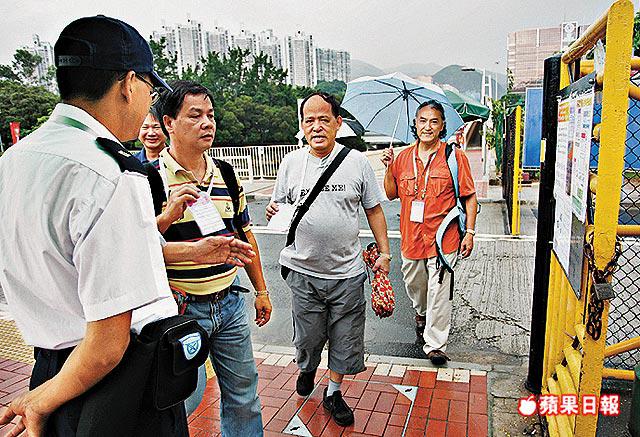 記者昨到沙田比賽場館視察,保安公司職員在場館入口站崗,所有進出的人士、車輛都要出示有效證件。馬伕宿舍的居民也要出示住戶證才能使用該入口回家。午飯時間,一輛送外賣的私家車駛至,因沒有證件,只能在場外停泊,大批工作人員走出場館外排隊拿外賣。