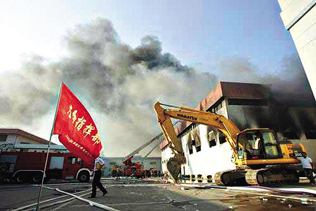 上海昨日發生特大火災事故,英資的上海雷盛塑膠製品有限公司一個存放過千噸塑膠粒倉庫,突然失火,黑色濃煙在10公里外可見。當局出動50輛消防車和300名消防員到場救火,並疏散四周居民。事件中廠方無人員受傷,但卻因火場墻壁倒塌,造成至少3名消防隊員殉職,9人受傷。大火燃燒逾8小時才救熄,起火原因正在調查中。