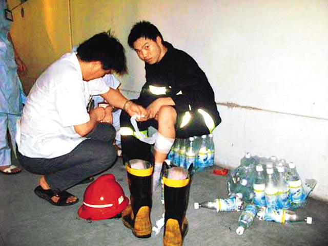 當局派出50多輛消防車,和300多名消防員到場撲救。下午2時許,因火場廠房一根主樑突然倒塌,一面墻壁倒下,致使多名地面的消防員被壓,其中3人當場死亡、9人受傷,傷者被送往醫院救治,已無生命危險。