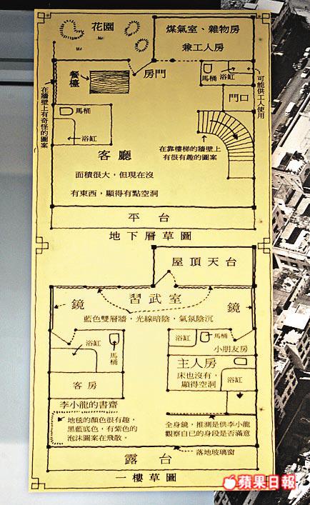 【本報訊】為紀念一代功夫巨星李小龍逝世35周年,本港一眾「龍迷」翻箱倒篋,借出800多件李小龍珍藏物品今起一連11日公開展覽,包括絕版的8米厘李小龍電影影片、影星周星馳送出的李小龍銅像,以及現址為時鐘酒店的李小龍故居解構圖更首度曝光。入場費只需30元,便能回顧這位武術宗師經典一生。 記者:黃偉駿