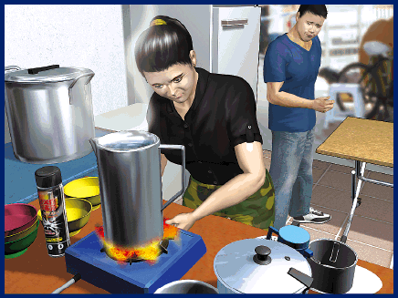 姓黃女東主事後表示,昨晨11時食店開舖,她開爐煲水,其間未察覺爐具旁邊放有一支殺蟲水,結果氣體受熱急速膨脹及爆炸,燒着爐火產生火球。當時店內四人均首當其衝,分別身體、面部及手腳燒傷,而一名路過姓李(23歲)男途人亦受池魚之殃,遭爆炸氣流所傷;可見威力之強勁,街坊見狀致電報警。警方到場時,受傷男途人已經自行往醫院,其餘傷者由救護員包紥後送院。