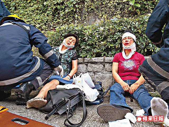 小巴上10人其中司機及五名男女乘客受傷,部份傷者血流披面,沒有受傷的乘客,隨即扶持傷者出車廂外等候救援。