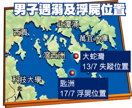 【本報訊】本周日在西貢大蛇灣遊船河遇溺失蹤的32歲男子鄧世峰,其屍體於昨晨9時許在西貢匙洲附近海面漂浮,由水警輪發現將屍體撈起,送上岸轉送殮房,並聯絡鄧的家人認屍後證實其身份。警方法醫官今日會剖屍確定其死因。