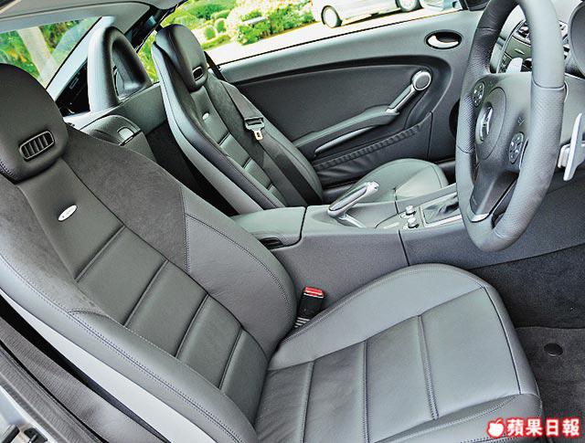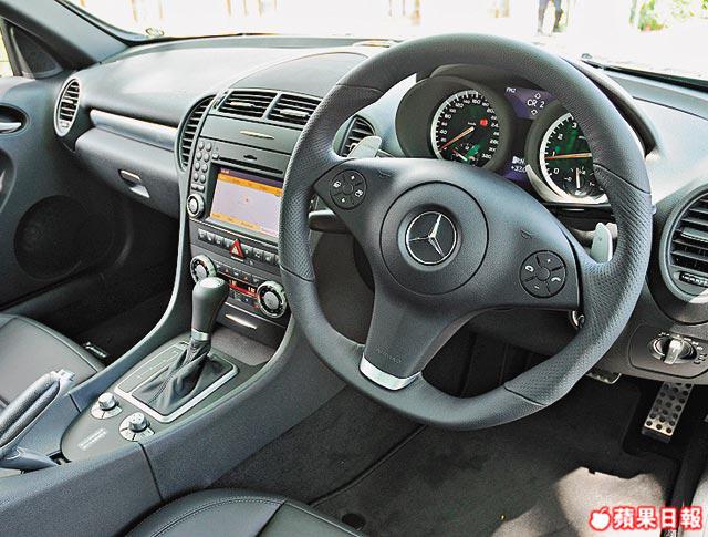 從來Facelifted,好多時都係整色整水,靚咗?醜咗?見仁見智。咁又證明咗Facelifted唔少得,不時有新鮮感之餘,又吸引多啲唔同審美眼光嘅人。SLK55AMG今次小變臉,跑味大增?又唔覺,不過肯定:型咗!原因係,個人睇法:黑色最Cool。今次Facelifted主要玩轉色,扮Cool點主要喺車頭,黑色呈箭頭形嘅頭唇充滿攻擊性,轉成啞黑色嘅頭燈組更加係焦點所在,最戲劇性嘅係胎軨竟然嚟招峯迴路轉,換上帶點高雅古典味嘅多輻式設計。車頭兩側的入風口換上新款式,再望上啲,側面指揮燈都搶過人,原來換上咗同新SL63AMG同款嘅箭頭形新設計。內櫳雖然整體上忠於原作,不過睇真設備原來升咗級,原本屬Option嘅Airscraf,成為原裝配備,音響亦有插SD卡功能,而最搶收視嘅,係換上咗有金屬裝飾嘅型仔軚環,今次小改都算無欺場。