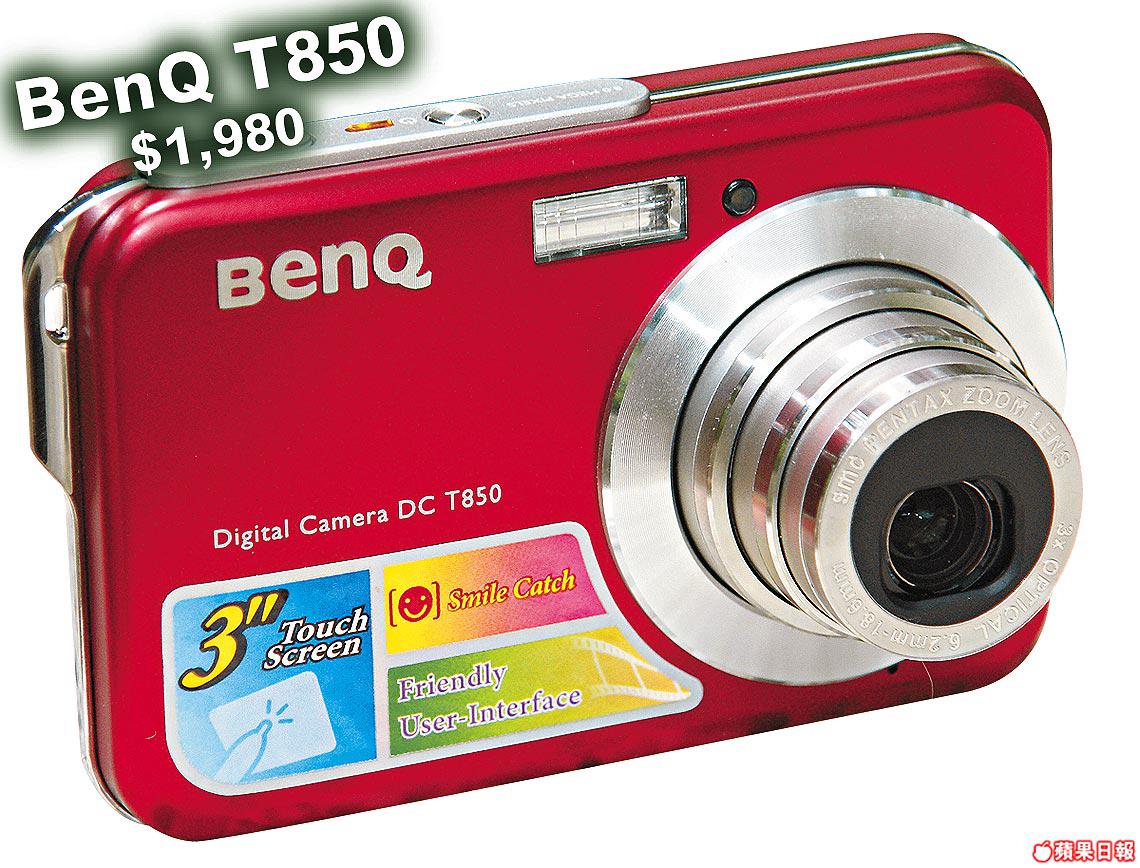 BenQ出DC一向予人玩味十足,今次T850直情玩大佢!$1,980入門機價錢,但玩上800萬像素CCD配PentaxSMC三倍光學變焦靚鏡,基本功架幾齊備,不過翻轉機背你會發覺冇乜按鍵,因為佢使用了3"特大號觸屏,功能選項全以OnScreen設計,令操控及機身設計更簡約。