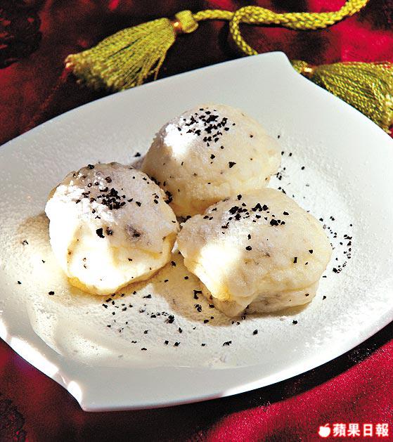 貌似高力豆沙,以蛋白及黑松露碎做粉糰,包入芒果及黑松露碎炸香,夠軟滑。