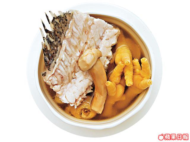 足100斤野生龍躉去肉留魚骨,配老雞燉6小時後,放原條松茸略煲,湯汁醇厚鮮甜,滋補養顏。