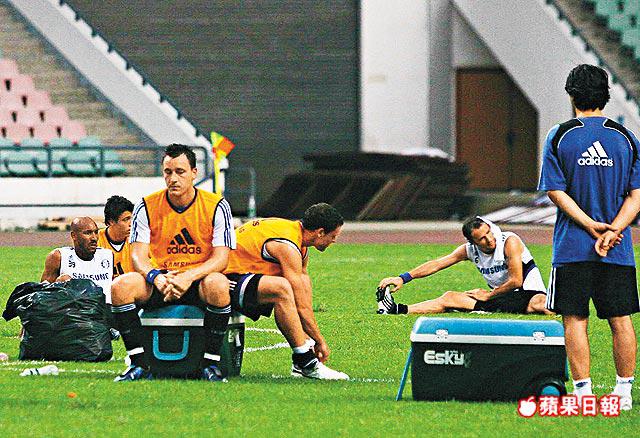 億萬大軍車路士昨晨飛抵廣州,為3站亞洲之旅揭開序幕。這次藍戰士歷史性訪華,吸引力雖較去年曼聯訪穗時遜色。不過,巨星林柏特、施治、以及新帥史高拉利大玩親民,球迷索取簽名全無托手踭。惟在操練時所見,車仔球員在攝氏35度的高溫下,明顯吃不消,要經常飲水降溫。