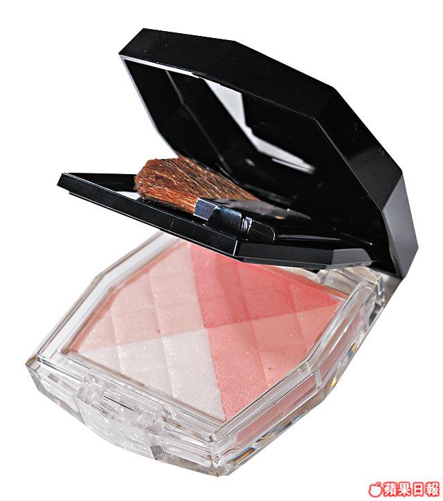 4.顴骨位置打圈掃上橙色胭脂。最後搽上玫瑰紅色唇膏。
