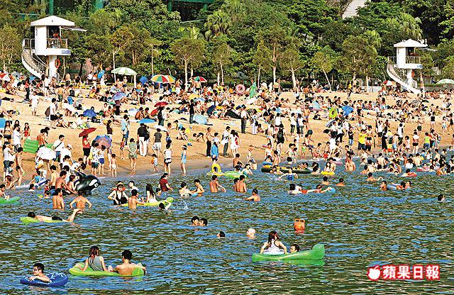 昨日天氣酷熱下,很多市民紛紛到泳池、海灘暢泳消暑及行山。天文台表示,在昨下午1時至3時,一度錄得市區氣溫達攝氏32度,九龍城、西貢及打鼓嶺均錄得攝氏33度,屯門更達攝氏34度,京士柏平均紫外線指數達12,強度屬於極高。