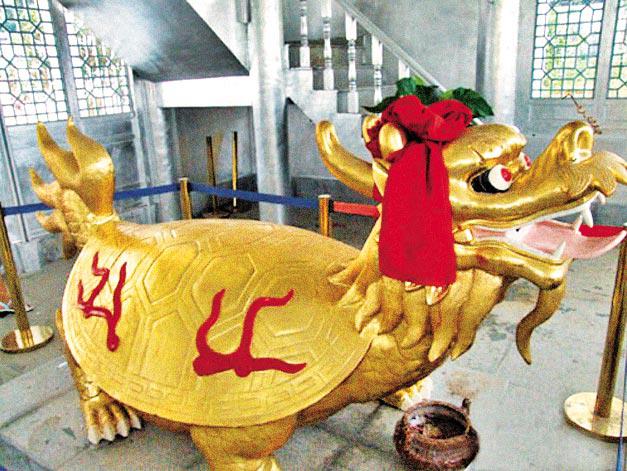 湖南省永興縣有「中國銀都」之譽,該縣以五萬両白銀打造的「中國第一銀樓」(左圖)前日向遊客開放,裏面放有金銀展品。銀樓借鑑日本金都的「金樓」而建,除屋頂瓦片外,其他主要構件全部用銀裝飾,一樓是柱式空透建築,中間鑄有一大龜(右圖);二樓則雕樑畫棟,有門窗隔壁。