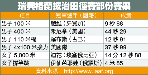 【綜合瑞典外電】周二的瑞典格蘭披治田徑賽焦點賽事,男子100米的牙買加「飛人大戰」,結果舊世績保持者鮑維(AsafaPowell)跑出9秒88、以0.01秒的些微之差,力壓同鄉「高佬飛人」保特(UsainBolt),勇奪金牌。
