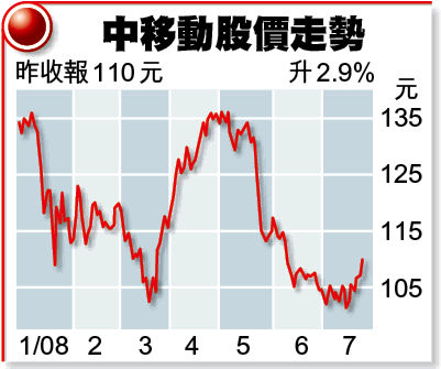 中移動(941) 昨收報:110.00元 變幅:+2.90%
