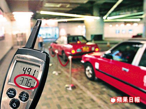記者於商場內之的士上落客區錄得攝氏37.6度,那裏通風設備不足,的士不會停車熄匙,增加廢氣排放量。