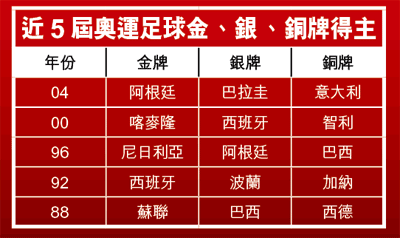 除英國、烏拉圭及匈牙利於1912、1928及1968年能夠衞冕金牌,之後就沒有球隊能蟬聯,且看今屆強陣出戰的阿根廷能否打破宿命!
