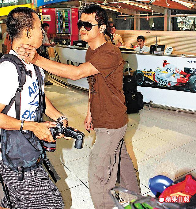 梁朝偉和劉嘉玲日前在不丹完婚後,二人今日將偕林青霞飛往印度,嘉玲更會在當地拜會大寶法王噶瑪巴誠心求子。至於出席婚禮的嘉賓昨日已轉飛曼谷各自打道回府,王菲拖着兩歲小女兒李嫣、大女竇靖童和丈夫李亞鵬到達曼谷機場時,李亞鵬為護妻女突然發火,叉頸起腳連打三記者,打人後他仍怒氣冲冲地說:「我見到一次會打他一次。」