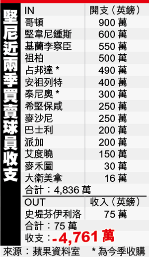 回想堅尼當年踢法像凶獸、屢與敵將衝突、曾向華朗叉頸,不留情面抨擊領隊;擔任領隊以後勇悍、進取作風不改,恍若患上「求才若渴症」,不斷擴軍,去季季前豪花4千餘萬鎊,也只為球隊換來一個15的排名,僅比尾3須降班的雷丁多3分。