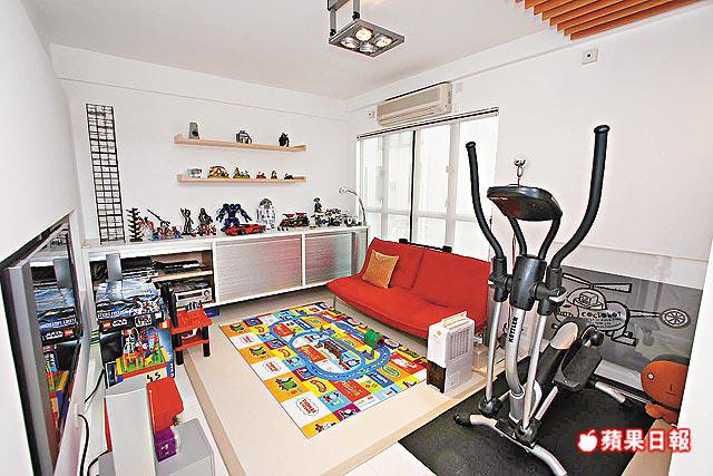 這伙複式戶面積2,152方呎,間隔3房3廳連套房,另備有工人套房,甫進大屋,玄關位旁是工人套房及客廁,由於工人套房入口暗藏於牆飾之內,故入門後並不容易察覺。玄關落半層為客飯廳及廚房,玄關上層分為兩個半層,首半層為寢區設有3個睡房,再拾級而上為偏廳。偏廳擺放了視聽娛樂及健身器材,是家中的小型康樂室。另外,天台面積近300方呎,間隔四正,面積闊落好用,對正翠綠山色,亦是家人玩樂的好地方,隨時可變身燒烤樂園。