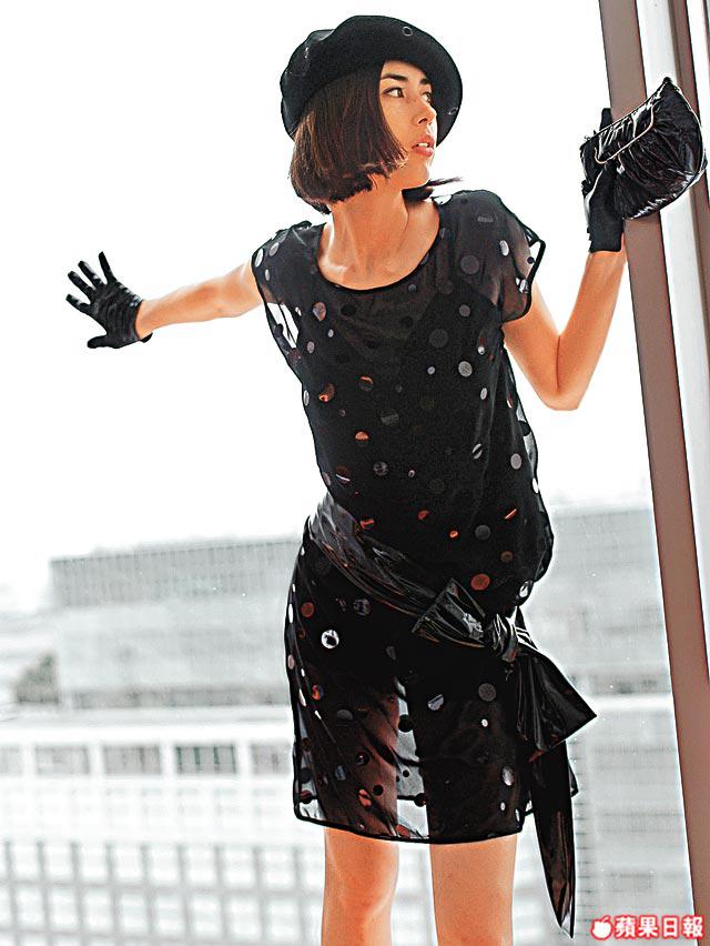 agn囗sb.黑色透視波點連身裙連PVC腰帶$2,570、黑色絨料畫家帽$790、黑色手襪(售價待定)、黑色PVCClutchBag$490
