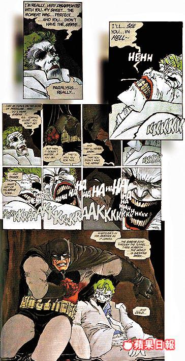 電影《大逃殺》,很近似這種世界,當遊戲規矩是「只能活一個」的時候,人會分成三類:自殺的、想盡辦法殺人的、盡量不殺人,等其他人互相廝殺的。要到這種時候,人才能明白自己的真口味。但《大逃殺》的故事裏,至少有規矩,如果連這條規矩都沒了,而街上到處有人在互相折磨,你會怎樣呢?這是此刻的你難以推估的。在FrankMiller的漫畫中,小丑是在瘋人院逃出來的,因為在這個有規矩的世界中,小丑被認定是瘋漢(數天前在日本八王子市書店亂殺人的狂徒,的確很接受小丑的精神狀態,該狂徒向警方自首,說「只想殺幾個人出氣,隨便殺誰都可以」),小丑當然是瘋的,因為他──過份前衞地──預早把自己推前到世界末日的精神狀態。這已經超出分辨對錯的範疇。南京大屠殺,需要死那麼多人嗎?不需要。當中有很多是順手殺的。納粹時期又為甚麼死那麼多人?殺開有癮,不如繼續殺。這是人類一種極端的精神狀態。