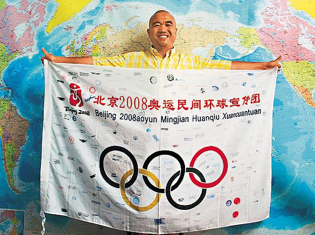 「我們要辦大喜事,要走遍世界七大洲,請大家來喝喜酒。」2001年北京申奧成功,北京人曹大佛和他成立的「奧運中國民間環球宣傳團」就決定,到世界各地宣傳北京奧運。七年來,曹花了300多萬元人民幣,走遍世界七大洲110多個國家,甚至南極、北極,以及局勢不穩的黎巴嫩等,也有他的足迹。