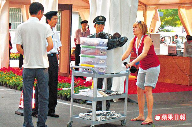 昨日所見,「北師大」大門開始守衞森嚴,大門入口有專人檢查證件,只有校內學生及記者才能入內;而「美奧隊」佔用的地方包括體育館及入住美奧隊後勤人員的留學生公寓都設有「安檢」,田徑場更用藍布圍着,十分神秘。