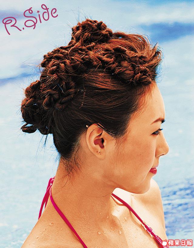 初看到完成的髮型實在驚嘆不已,但原來這髮型並不如想像中複雜,只是需花心機和時間,有耐性地將頭髮逐小束夾好。由於頭髮夾得很貼頭皮,所以非常穩固,保證去海灘玩一Day都唔會亂。