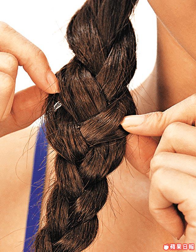 2.隨意將三手辮的髮圈掹鬆。