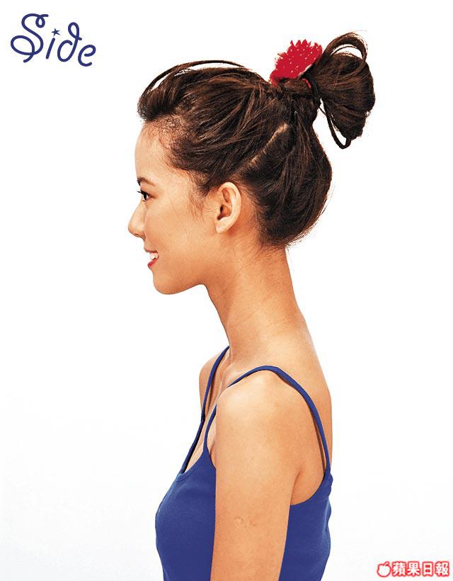 這個波波髻髮型主要是把頭髮分段扭實後紮成馬尾再扭髻,看起來髮型的線條更有層次,而且比只紮馬尾扭起來堅固得多呢!