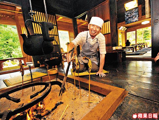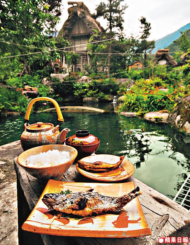 在小村裏散步,要好小心。屋子周圍都被小河道圍繞,裏面流的是日本北阿爾卑斯流下來的山泉水,方便引水灌溉、運送及雪凍瓜菜。清澈又優良的泉水,除豐盛農作物外,內裏還有大量岩魚,長大的岩魚,肉質沒那麼香嫩,一般都拿來做魚生,只有小魚才用來在火爐前慢慢烤。之前在金澤的幾天裏,早午晚三餐都有條鹽燒岩魚搭單上,但一筷子夾去就碎成豬肉鬆似的,連骨咬又亁亁的。不過來到白川鄉,我們到一座有80年歷史的合掌屋裏吃鹽烤岩魚,那道醬漬小魚的醬料用得恰到好處,烤魚肉也不會散開來,咬下去又不會亁爭爭。原來外間的烤岩魚,魚跟火爐的距離都太近,但這家店舖製作了一個特別烤爐,讓魚跟火保持一定距離,烤出來的魚可以整塊魚肉拆下,大口大口的吃,配飯、醃菜與梅子粉,令人感受到白川鄉400年之味!