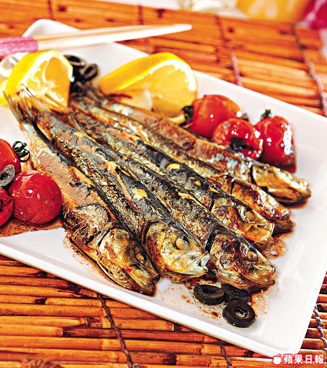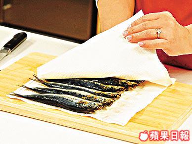 沙甸魚6條、車厘茄6粒、水欖3粒、酒1湯匙;