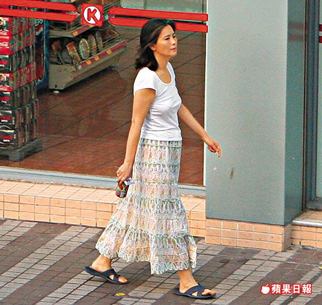 前日下午5時半左右,不施脂粉的藍潔瑛身穿白色緊身T恤、長裙,腳踏拖鞋,獨個兒離開愛澤樓寓所,前往附近的OK便利店購物,見她兩邊頭髮斑白,樣子頗為憔悴。