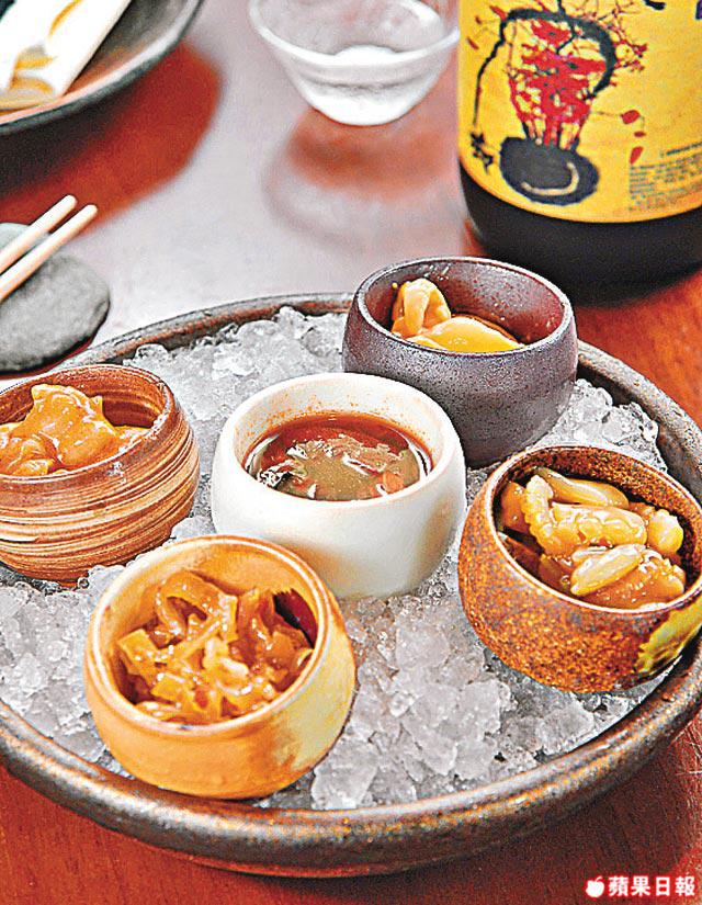 阿Wing頗饞嘴,於居酒屋工作,第一時間可以嘗試最新菜式。既然如此,馬上請她推介一兩道最好味菜式來試試,「我份人比較貪心,一次過想試足五種口味,所以我最愛吃日式珍味拼盤。」二話不說,馬上點個拼盤試試看。第一眼感覺賣相相當吸引,碎冰墊底見到都透心凉。螢光魷魚、螺肉、海蜇、山葵八爪魚、海膽汁墨魚款款都充滿特色,八爪魚拌山葵顯得份外惹味;海膽汁墨魚夠鮮甜;海蜇同螺肉十分爽口;螢光魷魚我最喜愛,味道夠鹹有深海鹽水味道。阿Wing,你真識食!