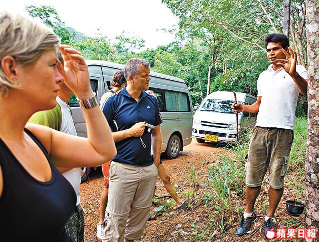 許多人到喀比攀石和潛水,此行天氣麻麻,我選保守的PlanC──島上生態遊。因曼谷和布吉的過度興旺,令人忘記還有一大片未經修飾的熱帶森林。在KohLanta,周圍可看到橡膠樹林,一棟棟像塗滿白色塗改液的朱古力。「KohLanta七成面積種滿橡膠樹,工人在樹幹放個兜,收集到一定份量的橡膠就拿去加工……」當地導遊以九牛二虎之力用英文講解,我也回敬九牛二虎之力去聽,但只聽到咁多咋!