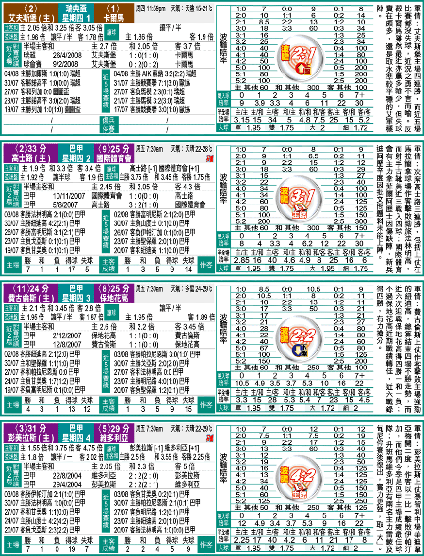 星期四4彭美拉斯大(1.72)2x1